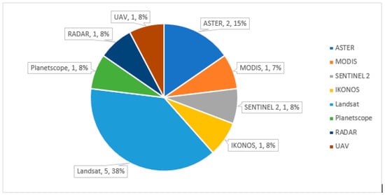 A pie chart showing the remote sensing sensor used in the study area.