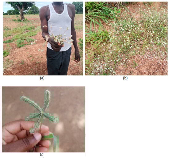 (a–c) “Burkina” Invasive Grass Species, which dominates most farmlands in the Northern Region.
