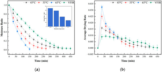 3.1.1. Effect of Different Radiation Temperatures on Drying Characteristics