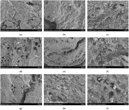 Microstructure of cistanche slices under different drying conditions. (a) 1, (b) 2, (c) 3, (d) 4, (e) 5, (f) 6, (g) 7, (h) 8, (i) 9.