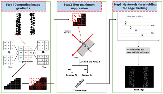 of the classical Canny algorithm. The specific calculation process is shown in Equations (10) and (11).