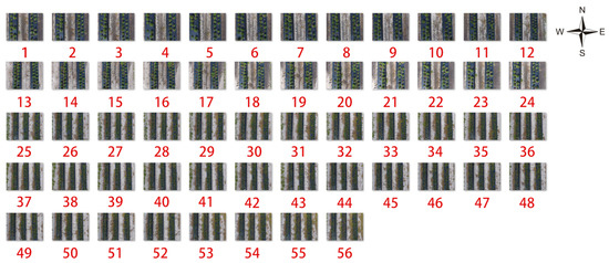 Figure 16. The method proposed in this study was used to obtain the 56 regional growth information maps. The growth information maps were concatenated according to the original image position to obtain the growth information map of the overall strawberry field, as shown in