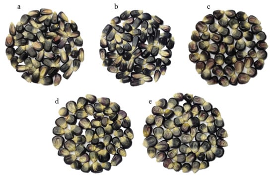 - Uriarte-Aceves, P.M.; Cuevas-Rodríguez, E.O.; Gutiérrez-Dorado, R.; Mora-Rochín, S.; Reyes-Moreno, C.; Puangpraphant, S.; Milán-Carrillo, J. Physical, Compositional, and Wet-Milling Characteristics of Mexican Blue Maize (Zea mays L.) Landrace. Cereal Chem. 2015, 92, 491–496. [Google Scholar] [CrossRef]