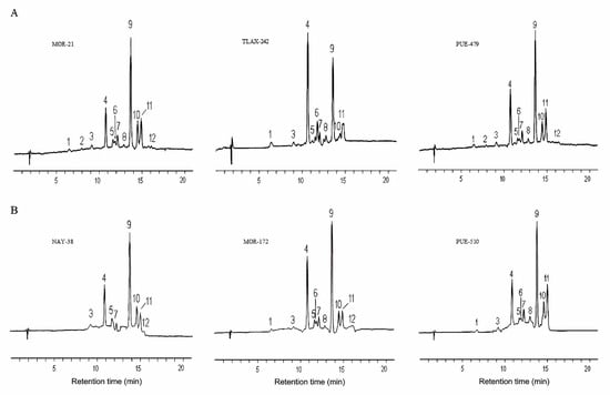 3.2. Anthocyanin Profiling of Maize Grain Accessions in Mexican Varieties