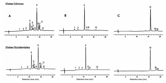 | 11 | 14.94 | Cyanidin 3 dimalonyl-glucoside | Acylated | Salinas-Moreno et al. [13]; Paulsmeyer et al. [42] |