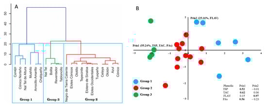 3.3. Hierarchical Analysis and Principal Component Analysis of Blue-Purple Maize Grain Races in Mexico