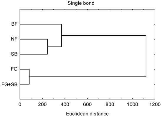The analysis of clusters separated two groups of technologies for keeping soil temporarily excluded from agricultural production with different effects on the yield and quality of crops grown afterwards (Figure 3). One group was composed of fallows swarded with fodder galega and fodder galega mixed with smooth brome grass. The yields of crops and the quality of yields produced by the crops grown after the fallows were turned into farmland again were approximately the same in this group. The other cluster consisted of the natural fallow and the fallow sown with smooth brome, and the differences in this group were greater.