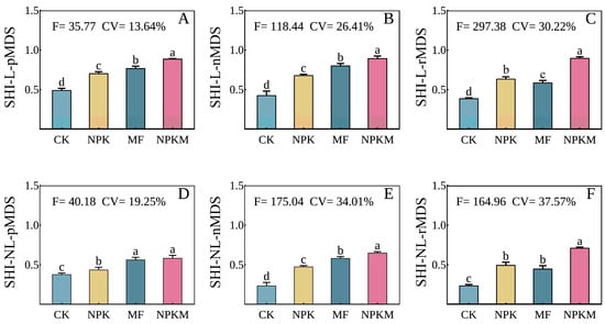 3.3. Comparison of SHIs between Fertilization Treatments