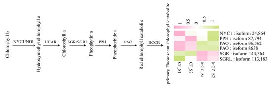 - Park, S.Y.; Yu, J.W.; Park, J.S.; Li, J.; Yoo, S.C.; Lee, N.Y.; Lee, S.K.; Jeong, S.W.; Seo, H.S.; Koh, H.J. The senescence-induced staygreen protein regulates chlorophyll degradation. Plant Cell 2007, 19, 1649–1664. [Google Scholar] [CrossRef] [PubMed]