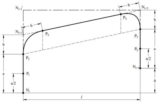 To reduce the vibrations from the sudden change in acceleration at the corner and improve the positioning accuracy, Bezier curves are used in the transition section to smooth the transition of the right-angled segments of the “gate”-shaped trajectory, namely “” and “” segments.