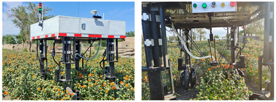 The safflower-picking robot (shown in Figure 1) is mainly composed of a power system, a leveling system, a navigation system, an identification and localization system, and a picking system.