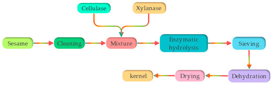 - Song, G.H.; Huang, J.N.; Lu, X.; Sun, Q.; Zhang, L.X. Optimization of enzymatic peeling of sesame. Food Sci. 2013, 34, 28–31. [Google Scholar] [CrossRef]