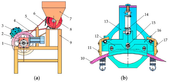 - Wang, Y.R. Optimization Design and Experiment of Flexible Compound Rubber Seed Sheller. Master’s Thesis, Hainan University, Haikou, China, 2021. [Google Scholar] [CrossRef]