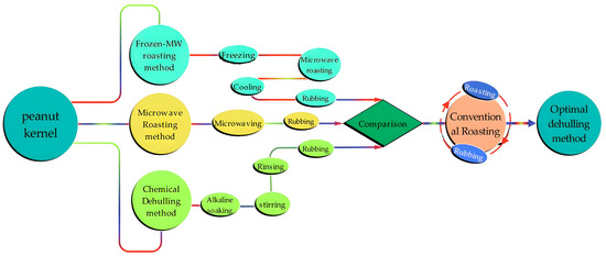 - Zhang, F.Y.; Xiong, J.H.; Zhou, Z.E.; Min, S.F. Study on peanut peeling technology by microwave baking. Food Sci. 2005, 26, 134–137. [Google Scholar] [CrossRef]