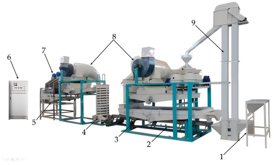 - Yu, L.M.; Wu, D.S.; Wen, Y.X.; Wu, M.C.; Zhu, L.X. Developing equipment for dehulling and separation of rapeseed. J. Chin. Cereals Oils Assoc. 2002, 17, 40–43. [Google Scholar] [CrossRef]