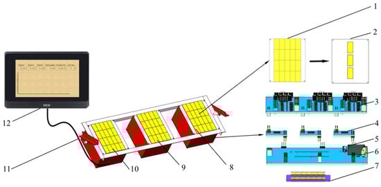 Figure 6 shows the bidirectional array structure [26,27,28,29]. In this article, piezoelectric sensor monomers are arranged horizontally and vertically to create a larger sensor area, thereby extending the monitoring range. Each sensor unit in the bidirectional array piezoelectric sensor is paired with its own processing module dedicated to monitoring a specific area, enhancing the accuracy of signal processing. Furthermore, when multiple grains collide simultaneously with the bidirectional array piezoelectric sensor, each unit can independently transmit a collision signal without interference. The bidirectional array piezoelectric sensor enhances the monitoring capacity by enabling simultaneous detection of multiple grain collisions, thereby increasing the overall sensor accuracy.