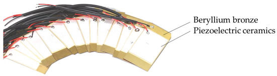 As illustrated in Figure 4, this article uses a 0.2 mm-thick bronze sheet as the sensitive plate and a corresponding 0.2 mm-thick piezoelectric ceramic as the piezoelectric material to construct an individual piezoelectric sensor unit. Upon generation of a piezoelectric effect, the electrical signal is transmitted through the two wires that are soldered to both the bronze sheet and the piezoelectric ceramic.