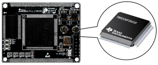 The core processor is pivotal to the monitoring system, serving as the backbone responsible for its operational efficiency and control mechanisms. When selecting a core processor, it is essential to weigh various factors, such as the specific application requirements, computational capabilities, precision, and suitability of the development environment. Among the array of common microcontrollers are the 51 series, STM32, digital signal processors (DSP), and field-programmable gate arrays (FPGA). After a comprehensive evaluation of these parameters, Texas Instruments’ 32-bit floating-point processor, the TMS320F28335 chip from the TMS320C28x family, has been chosen as the principal processor. As depicted in Figure 8 below, the most compact system board engineered with the TMS320F28335 at its core was presented (also referred to as a DSP28335).