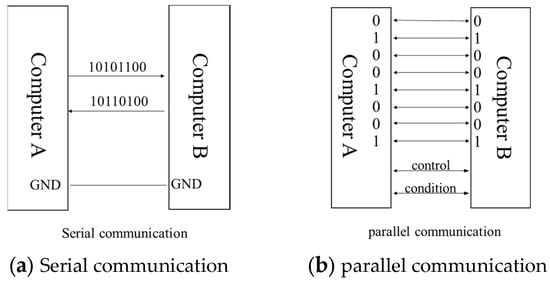 According to the design requirements of this study, each bidirectional array piezoelectric sensor needs to expand three AD7606 analog-to-digital conversion modules. The AD7606 analog-to-digital converter has two communication modes, namely, serial communication mode and parallel communication mode, as shown in Figure 10.