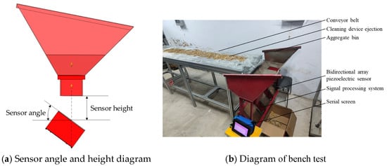 - In order to verify the accuracy, reliability, and stability of the cleaning loss monitoring device, bench tests and field tests were carried out. The bench test shows that the identification error rate of a bidirectional array piezoelectric sensor is 5.19% when the inclination angle is 44° and the center point is 300 mm away from the material outlet. In the field test, the overall operation of the device was stable without any fault. The error rate of kernel identification was less than 8%, and the average error rate was 6.69%, which met the design requirements of the harvester cleaning loss monitoring device and could remind the driver to adjust the operating parameters of the harvester to achieve the purpose of loss reduction.