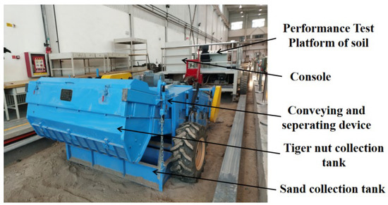 The tiger nut is a perennial herb of the Cyperaceae family. It is characterized by a developed root system, high adaptability, and strong stress resistance [1,2,3]. Large-scale planting of tiger nuts can not only modify sandy land, prevent wind, and fix sand, but also increase farmers’ economic income and improve people’s living standards [4]. In China, tiger nuts are mainly planted in Xinjiang, Inner Mongolia, Jilin, and Henan. Harvesting is an important aspect of the production of tiger nuts [5]. At present, the plantation of tiger nuts in Xinjiang mainly faces the problem of high power consumption during harvesting. Therefore, it is particularly important to study how to ensure efficient separation of tiger nuts from sand while reducing the power consumption of the whole machine during the conveying and separation process of the tiger nut excavation mixtures.