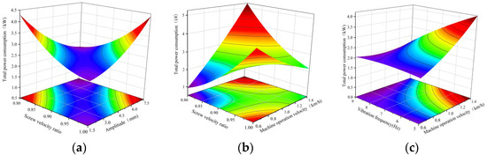 In short, when the screw velocity ratio is small and the amplitude is large, another factor in the interaction term needs to be increased or reduced to obtain a lower power consumption. When the screw velocity ratio increases from 0.8 to 1 and the amplitude increases from 1.5 mm to 7.5 mm, the total power consumption shows a trend of first decreasing and then increasing.