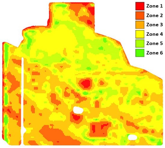 A sample zonemap after zoning. This field is classified by six labels from zone 1 to 6.