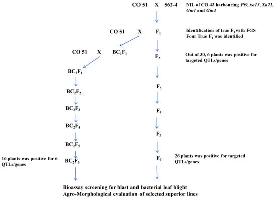 Chicago/Turabian StyleSubburaj, Samuthirapandi, Thiyagarajan Thulasinathan, Viswabharathy Sakthivel, Bharathi Ayyenar, Rohit Kambale, Veera Ranjani Rajagopalan, Sudha Manickam, Raghu Rajasekaran, Gopalakrishnan Chellappan, Kalaimagal Thiyagarajan, and et al. 2024. "Genetic Enhancement of Blast and Bacterial Leaf Blight Resistance in Rice Variety CO 51 through Marker-Assisted Selection" Agriculture 14, no. 5: 693. https://doi.org/10.3390/agriculture14050693