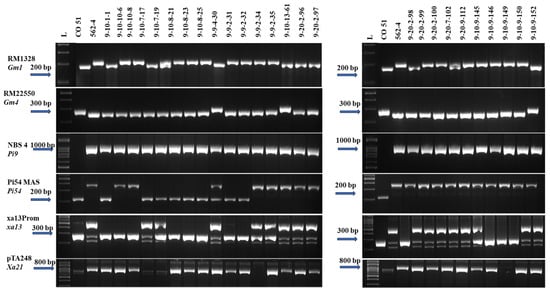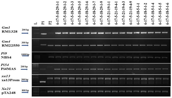 | S. No | RILs | Gm1 (RM138) | Gm4 (RM22550) | Pi9 (NBS4) | Pi54 (Pi54MAS) | xa13 (xa13Prom) | Xa21 (pTA248) |