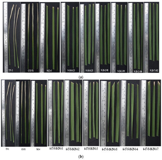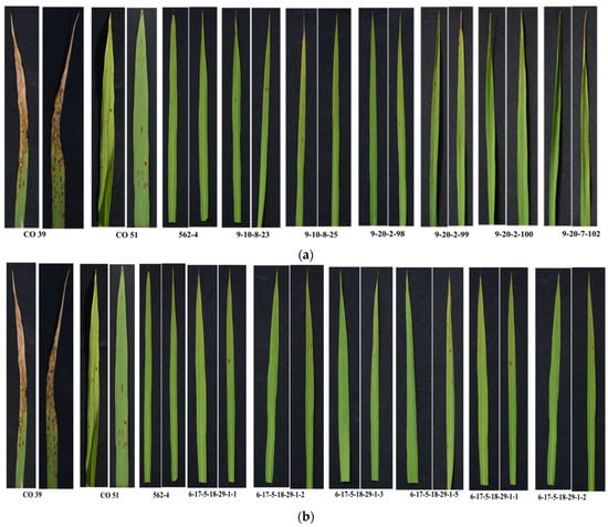 - Samuthirapandi, S.; Thiyagarajan, T.; Viswabharathy, S.; Bharathi, A.; Rohit, K.; Ranjani, R.V.; Sudha, M.; Krishnan, C.G.; Kalaimagal, T.; Raveendran, M. Improving rice blast resistance by stacking of two broad spectrum resistance gene Pi9 and Pi54 in cultivar CO 51 through Marker Assisted Selection. Electron. J. Plant Breed. 2023, 14, 695–706. [Google Scholar]