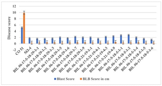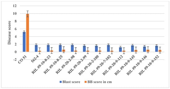 2.3. Screening of Selected RILs and BILs against Blast Pathogen