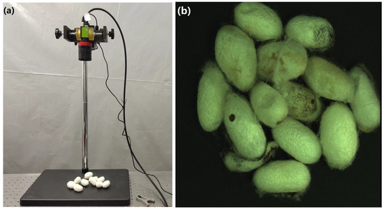 - Yang, C.; Peng, J.; Cai, J.; Tang, Y.; Zhou, L.; Yan, Y. Research and Design of a Machine Vision-Based Silk Cocoon Quality Inspection System. In Proceedings of the 2023 IEEE 10th International Conference on Cyber Security and Cloud Computing (CSCloud)/2023 IEEE 9th International Conference on Edge Computing and Scalable Cloud (EdgeCom), Xiangtan, China, 1–3 July 2023; pp. 369–374. [Google Scholar]