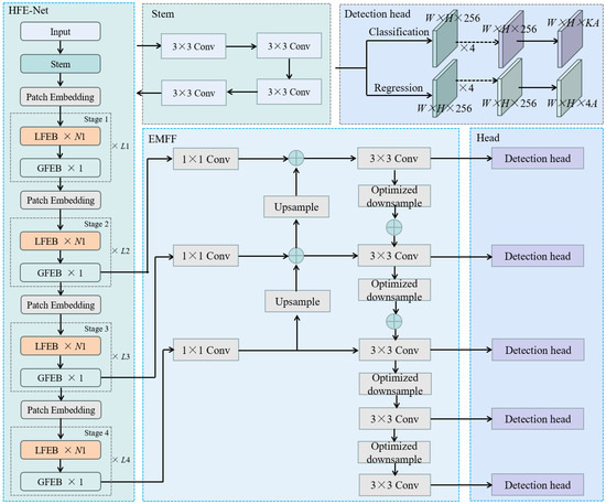 Based on the constructed HFE-Net and EMFF, combined with the detection head of RetinaNet, we propose a novel object detection model, AMMF-Net, which is used for fine-grained cocoon recognition, and its network structure is illustrated in Figure 9.