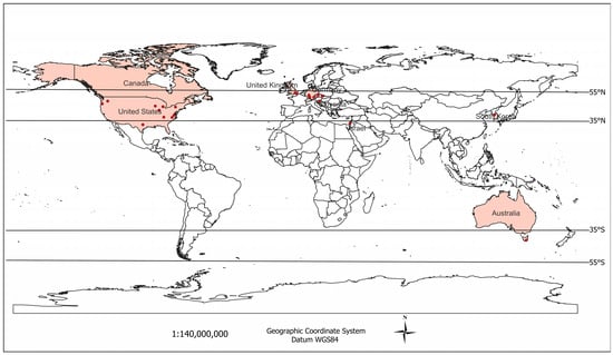The selected publications had their geographic coordinates (latitude and longitude) extracted in CSV format. These coordinates were obtained either from the study sites mentioned in the articles or the location of the institutions conducting the research. The distribution of these locations was visualized on a map in a Geographic Information Systems (GIS) environment.