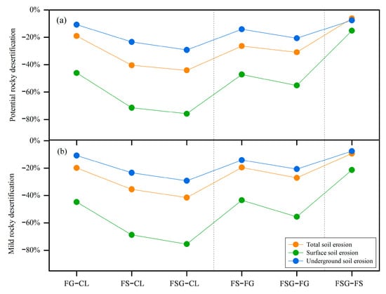 Comparison of soil loss between two vegetation types. (a): Potential rocky desertification, (b): Mild rocky desertification.