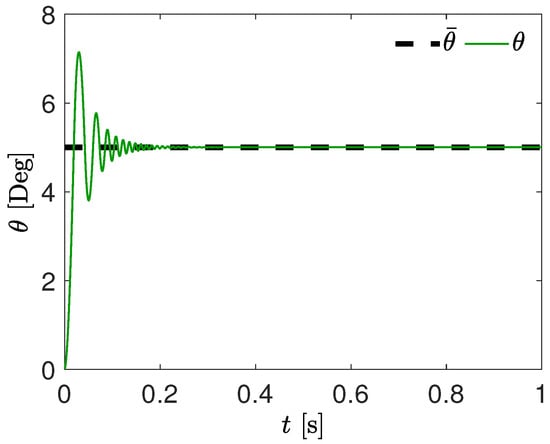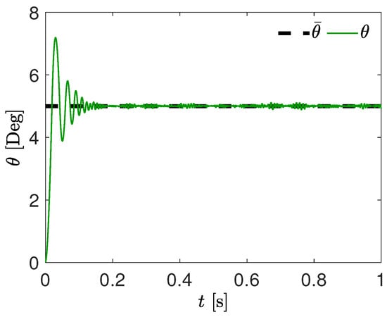 Now consider the system response displayed in Figure 2. Adopting any sign function approximation, for example, Equation (8) with an , the chattering phenomenon can be effectively reduced, as demonstrated in Figure 4. Notice that although this system presents uncertainties, external disturbances are not considered in the model.