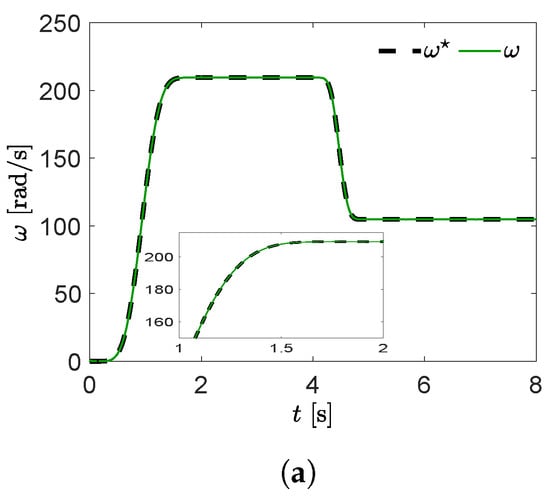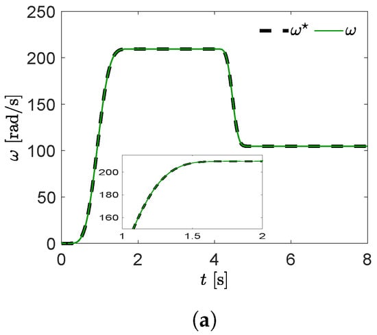 Now, the speed error is given by , where represents the motor’s angular speed reference trajectory. The proposed sliding surface for tracking trajectories is selected as