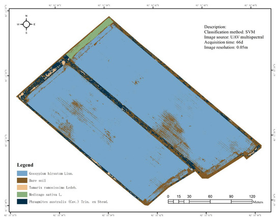 Figure 6. Cotton field feature classification using UAV multispectral data (SVM methods).