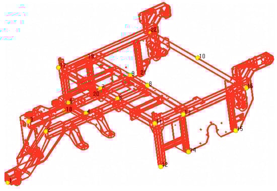 The overall structure of the frame is symmetrical, and the frame is divided into two equal parts along the center line. A total of 22 measuring points are arranged (as shown in