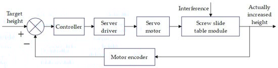 Considering the system’s structure, it becomes evident that the servo motor and screw mechanism are at the core of the obstacle avoidance control system. Additionally, the relationship between the screw’s rise height and the motor’s speed can be determined based on the screw lead []: . Consequently, the system only needs to model the control process of the servo motor, and by controlling the speed and direction of the servo motor, the position of the screw can be effectively controlled. The servo motor control model primarily comprises the voltage balance equation, induced electromotive force equation, electromagnetic torque equation, and torque balance equation [].
