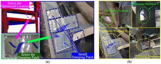 The selection and optimized installation of damping sheets. (a) Damping sheets were installed according to the experimental results. (b) Transfer paths damping installation.