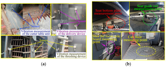 Path optimization and the installation of the optimization measurement point. (a) Measurement positions of each device. (b) Measurement positions of the seat and cab.