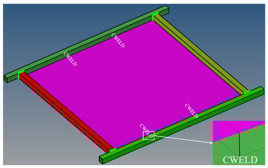 The material parameters used in this paper only consider their linear properties. The density of the electro-welded material is taken to be zero. This is due to the fact that spot welding does not produce additional weight in actual production. All other sheet metal parts are ordinary carbon steel materials. The material mechanical parameters used in the original model are shown in Table 1.