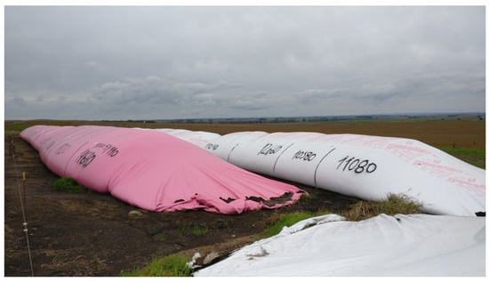 - Bartosik, R. An inside look at the silo-bag system. In Proceedings of the 9th International Conference Controlled Atmospheres and Fumigation of Stored Products, Antalya, Turkey, 15–19 October 2012; pp. 117–128. [Google Scholar]
