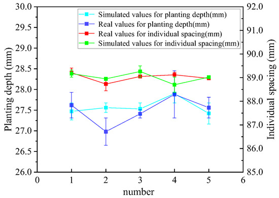 The measured planting depth, individual spacing simulation value, and actual value are shown in Table 3.