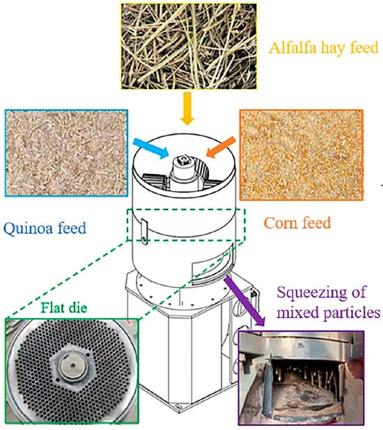 - Ren, S.; Li, J.; Shi, Y.; Wen, B.; Li, L.; Su, Z. Wear characteristics of flat die in flat die pellet mills based on Glycyrrhiza uralensis. Mater. Res. Express 2022, 9, 076510. [Google Scholar] [CrossRef]