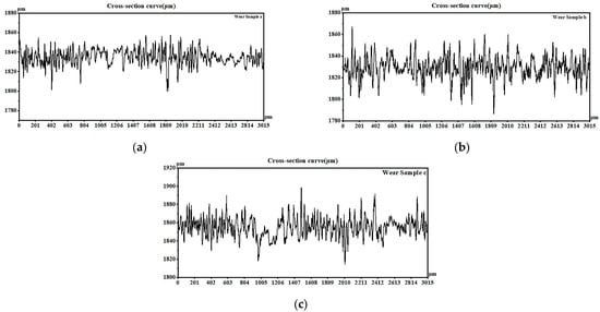 Sample cross-section curve: (a) Wear sample A; (b) Wear sample B; (c) Wear sample C.
