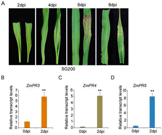 3.1. Pathogenesis of Maize B73 Inbred Line Inoculated with Ustilago maydis SG200 and Detection of Induced ZmPRs