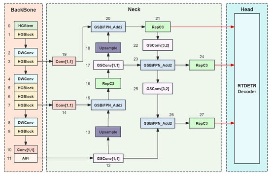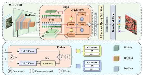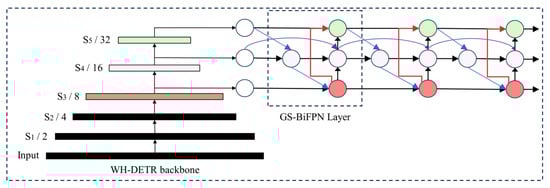 Specific application of GS-BiFPN in the WH-DETR detection architecture.