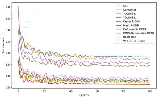 In the WH-DETR model, we further integrated the EIoU loss to enhance the model’s adaptability to complex scenes. The integrated loss function is as follows: